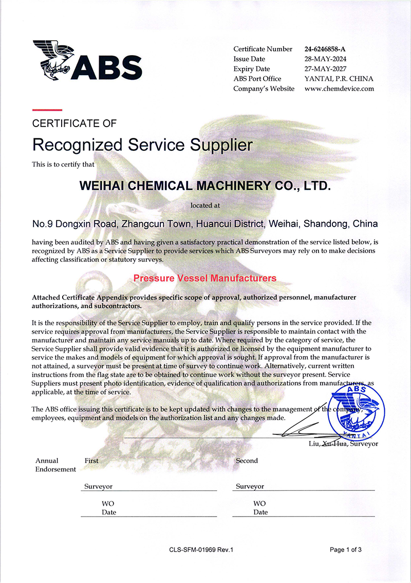 近日威海化工機(jī)械有限公司(以下簡(jiǎn)稱“威?;瘷C(jī)”)壓力容器產(chǎn)品成功獲得了美國(guó)船級(jí)社(ABS)頒發(fā)的權(quán)威認(rèn)證,是繼復(fù)合板產(chǎn)品ABS認(rèn)證后拿到第二張ABS證書,這標(biāo)志…